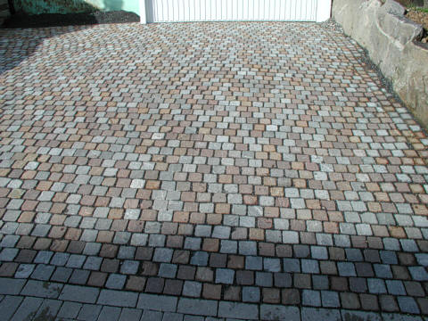Zufahrt aus demselben Material - eine solche Fläche wirkt lebhaft aber niemals aufdringlich bunt